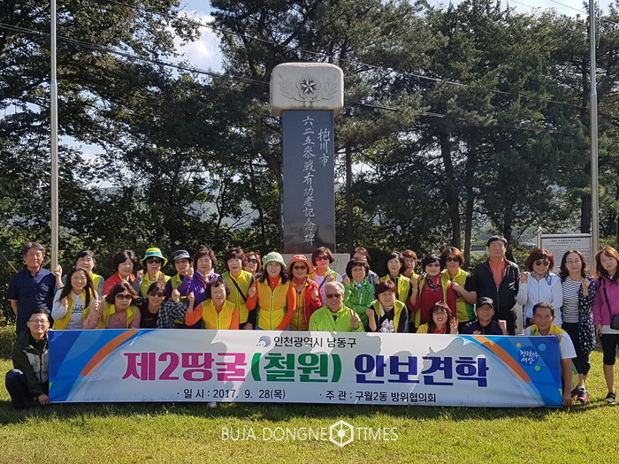 [부자동네타임즈 전경란 기자]인천 남동구 구월2동 방위협의회(회장 이경해)는 지난달 28일 방위협의회 회원 및 지역주민 등 40명이 참여한 가운데 강원도 철원에 위치한 제2땅굴을 방문해 안보 현장견학을 실시했다.