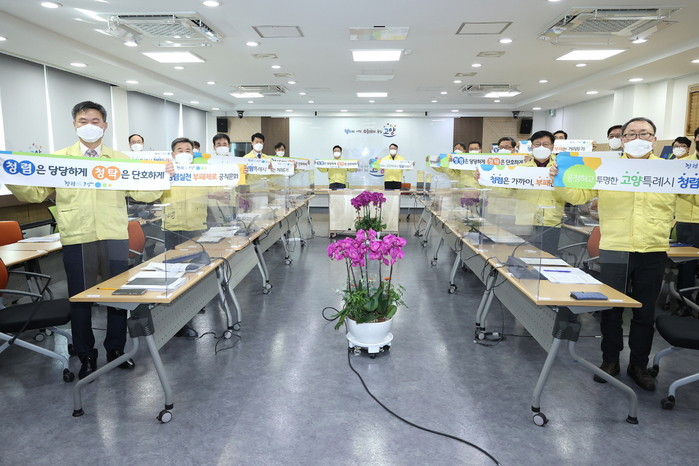[부자동네타임즈 김인수기자] 고양시가 지난 2일 평화누리실에서 4급 이상 간부 공무원 20여명이 참석한 가운데 ‘2022년 청렴실천 결의대회’를 실시했다.