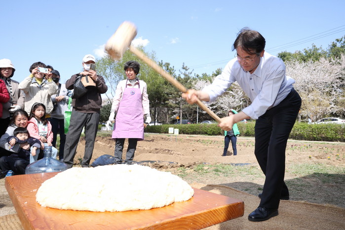 이번 행사는 민속예술단 ‘소한’의 사물놀이를 시작으로 수직텃밭 물주기, 토종씨앗 전시, 모종 나눔, 도시농업 기자재 전시, 친환경 화분 만들기 행사, 떡메치기 등 다양한 체험 활동과 작물 전시가 진행됐다.