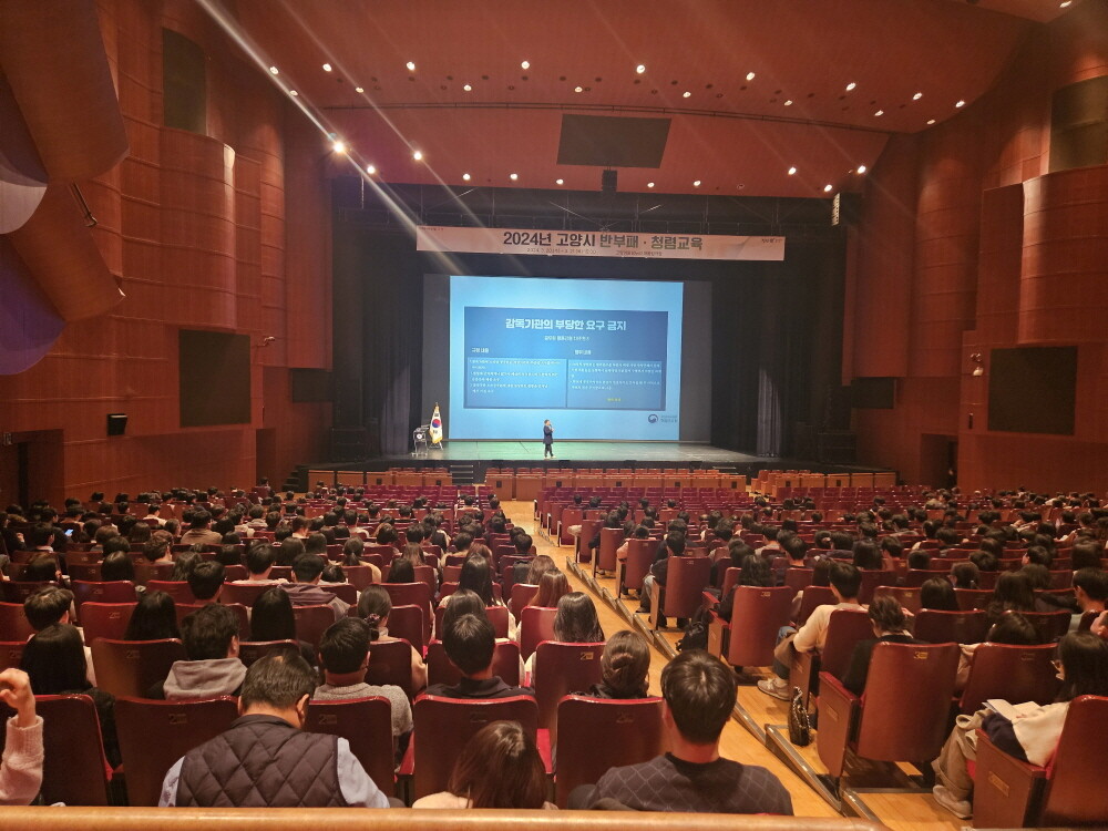 [부자동네타임즈 = 김인수 기자] 고양특례시는 지난 20, 21일 이틀에 걸쳐 고양어울림누리 어울림극장에서 7급 이하 공직자 1,600여명을 대상으로 2024년 반부패・청렴교육을 실시했다고 밝혔다.