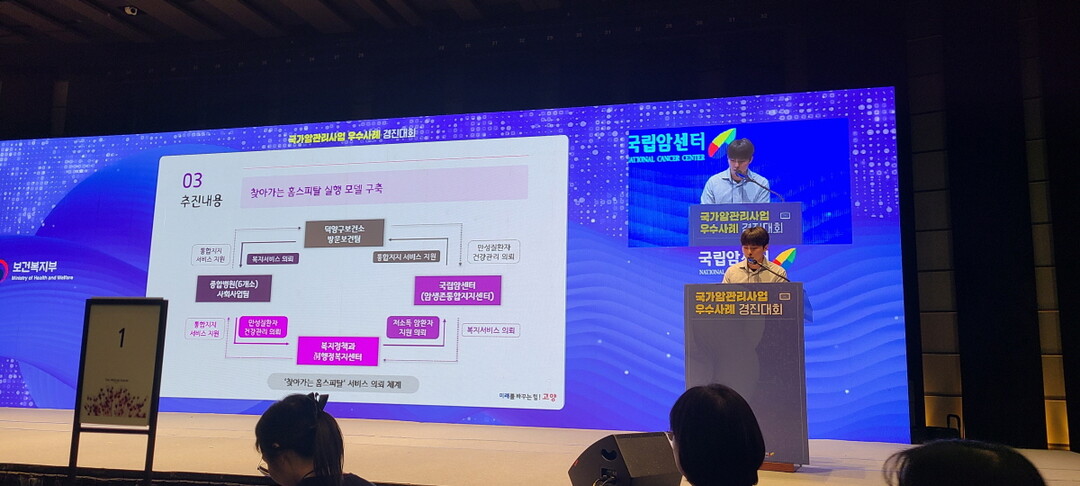 국가암관리사업 담당자들의 사업수행 능력 향상을 위한 국가암관리사업 우수사례 경진대회 에서 덕양구보건소는‘암생존자의 촘촘한 돌봄 안전망, 찾아가는 홈스피탈(home+Hostpital)’우수사례를 발표해 좋은 평가를 받았다.