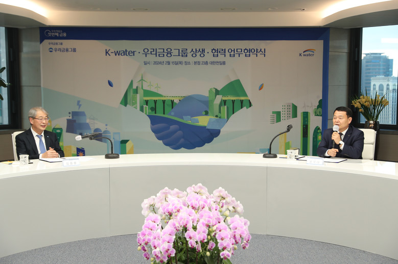한국수자원공사(K-water, 사장 윤석대)는 우리금융그룹(회장 임종룡)과 2월 15일 서울 우리은행 본점에서 ‘상생·협력 업무협약’을 체결했다.