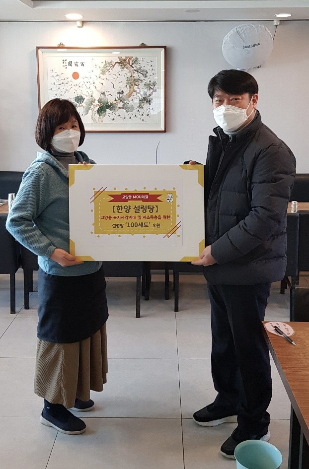 [부자동네타임즈 김인수기자] 고양시 덕양구 고양동 행정복지센터(동장 김명섭)는 지난 15일, 이웃들에게 따뜻한 설렁탕을 나누기 위해 ‘한양설렁탕’과 2년 연속 업무협약을 체결했다고 밝혔다.
