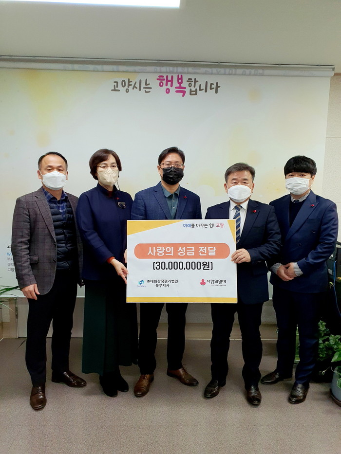 [부자동네타임즈 김인수기자] 고양특례시는(시장 이동환) 지난 13일 ㈜대화감정평가법인 북부지사에서 이웃사랑 나눔을 위해 성금 3천만 원을 기부했다고 말했다.