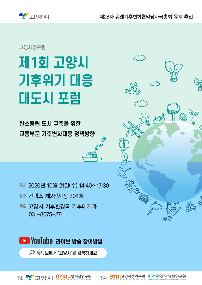 이재준 고양시장은 “성장 우선이었던 우리의 과오가 지금의 기후위기 상황으로 되돌아오고 있다.”면서 “고양시의 기후위기 대응 정책수립의 장이 될 본 행사에 많은 시민들의 관심과 참여를 부탁드린다.”고 말했다.