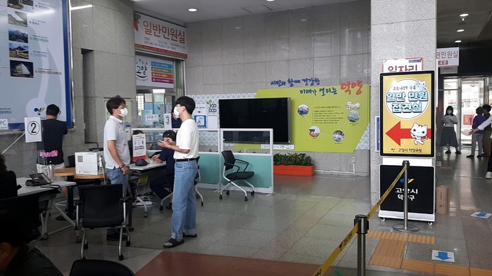 이에 따라 청사에 방문한 민원인은 우선 1층 안내 데스크에서 민원 사항을 전달한 후 담당 직원 연결을 통해 접견 창구에서 민원 상담을 하게 된다.