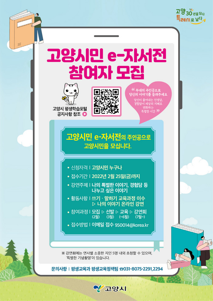 시민e-자서전은 고양시민이면 누구나 참가 신청이 가능하다. 참여를 원하는 시민은 고양시평생학습포털 공지사항을 참고해 신청서를 작성 후 이메일 제출하면 된다.