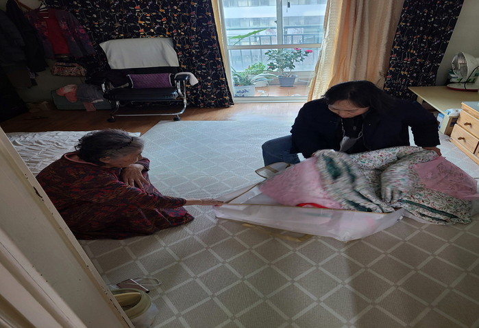 한편, 작년 9월 화재발생으로 아파트 내부가 전소되었던 가정에 이불세트를 전달하여, 따뜻한 겨울을 보낼 수 있도록 하였다.