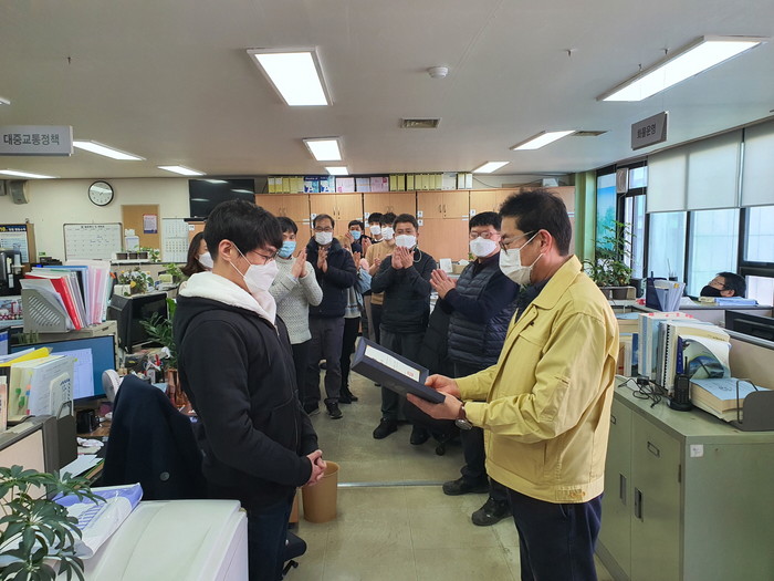 시 대중교통과에서는 코로나19 확산방지를 위한 해외입국자 안전 귀가 서비스 전세버스 종사자, 대중교통 사각지대 주민들의 교통복지 향상을 위해 도입한 고양누리버스의 개통 및 운영 종사자, 108만 시민들의 편리한 이동권을 보장하고 친절한 서비스로 모범이 된 운수종사자 등 총 31명에게 고양시장 표창을 수여하며 감사를 표했다.