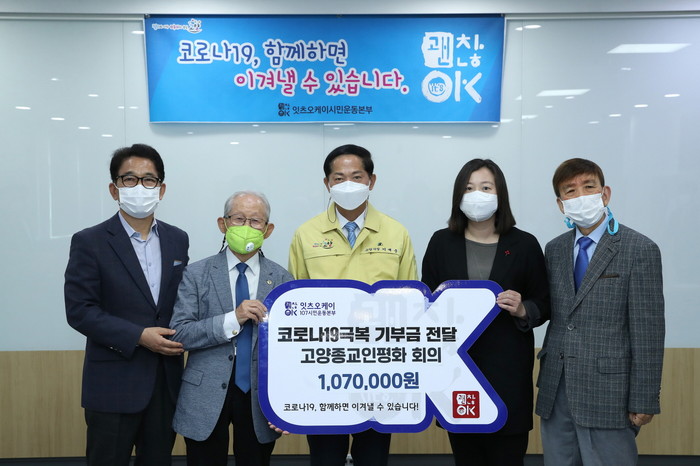 이날 성금 전달식에는 이재준 고양시장과 성금을 기탁한 고양도시관리공사 노동조합의 김희영 위원장, 고양종교인평화회의 유재덕 목사를 비롯해 잇츠오케이 시민운동본부 회원 및 경기사회복지공동모금회 관계자 등이 함께 자리했다.