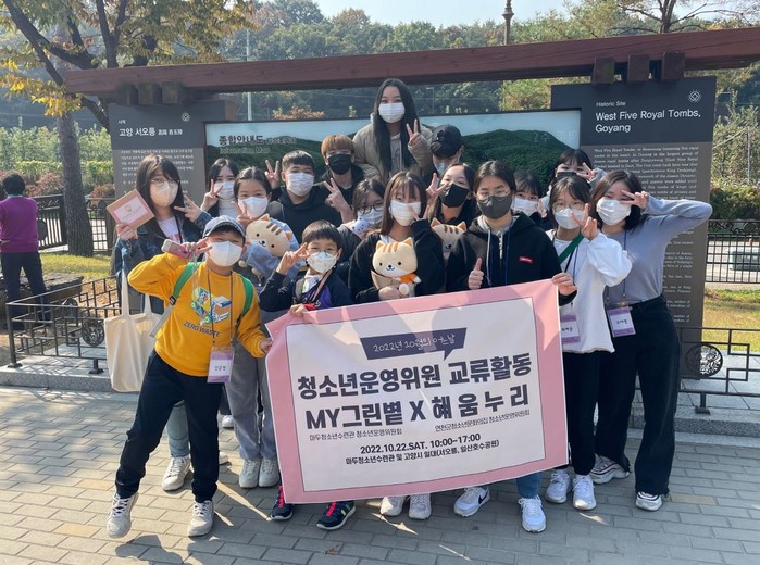 [부자동네타임즈 김인수기자] 고양시청소년재단(이사장 이동환) 마두청소년수련관 청소년운영위원회 ‘MY그린볕’은 지난 22일 연천군청소년문화의집 청소년운영위원회 ‘혜움누리’와 함께 청소년운영위원회 교류활동을 진행했다.