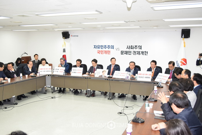 오늘 아침 7시부터 교섭단체 대표 네 사람이 개헌협상과 4월 국회 정상화를 위한 협의를 했다. 야당이 요구하는 방송법과 관련해 민주당은 언제든 협의할 준비가 되어 있다고 우원식 원내대표는 주장 했다. 야당은 민주당이 내놓은 안을 그대로 통과시키겠다는데 무엇을 협의하자고 하는데 도통 알 수가 없다. 정치권 외풍을 차단하고 방송의 독립성과 공정성을 담보해 공영방송을 국민의 품에 돌려드리고자 하는데 그렇다면 민주당이 내놓은 과방위의 방송법은 정치권 외풍에 휘말려 방송의 독립성과 공정성을 훼손하고 공영방송을 국민의 품에서 빼앗는 법안이라는 말씀인지 되묻지 않을 수 없다. 협의에 앞서 방송의 독립성과 공정성을 훼손하는 방송법은 당초 왜 내놓은 것인지 친절히 설명이라도 해주길 바란다. 더 이상 정권잡고 제왕적 대통령 권력으로 공영방송 사장 끌어내고 자기 입맛대로 방송을 장악해서 국민의 알권리를 자기 입맛대로 끌고 갈 심산이 아니라면 다시 한 번 방송법은 민주당 안 그대로 통과시킬테니 더 이상 시간 끄는 꼼수는 부리지 말길 바란다. 개헌문제와 관련해서도 우원식 원내대표는 어제 오늘 투표시기와 권력문제만 협의된다면 다른 부분은 유연성을 가지고 논의할 수 있다고 했다. 기왕 협상에 나서는 마당에 유연성을 가지려면 다 가져야지 왜 굳이 이것만은 양보 못한다고 단서를 다는지 그 태도를 이해할 수 없다. 잘 아시다시피 이번 개헌의 핵심은 제왕적 대통령 권력구조를 종식시켜야 한다는 국민의 뜻과 바람에 의해서 개헌논의가 이뤄지고 있다. 팥소 없는 찐빵 개헌을 위한 형식적인 개헌논의로 올 연초부터 지방분권개헌이라는 슬로건을 내걸고 전국 지자체를 총동원해서 국민들 서명까지 유도하면서 문재인 대통령은 민주당은 뭘 얻었는가. 오로지 6.13 지방선거만 이기면 된다는 식의 ‘개헌정치쇼’를 가지고 개헌장사를 한 것도 하지 않은 것도 없다는 사실이다. 집권당 원내대표 앞세워서 대통령 개헌안 발의해서 사실상 개헌논의 무산시키려 회책하지 말고 교섭단체 원내대표들 청와대 초청해달라. 국민개헌안 합의를 위해서 자유한국당은 선거구제개편를 포함한 국민의 기본권, 사회적 기본권을 포함한 새시대적 헌법을 만드는데 최선의 노력을 다해 협조할 것이다. 대통령은 제왕적 대통령 권력, 지난 작년 5월 19일 문재인 대통령이 한 내용을 다시 한 번 상기시키겠다. 선거구제 개편만 수용되어지면 대통령제가 아닌 다른 권력도 할 수 있다고 분명히 문재인 대통령께서 말씀하셨다. 지금 분권대통령, 책임총리제 하자는데 작년 다르고 올해 다른 문재인 대통령의 입장 분명하게 밝혀주시기 바란다.