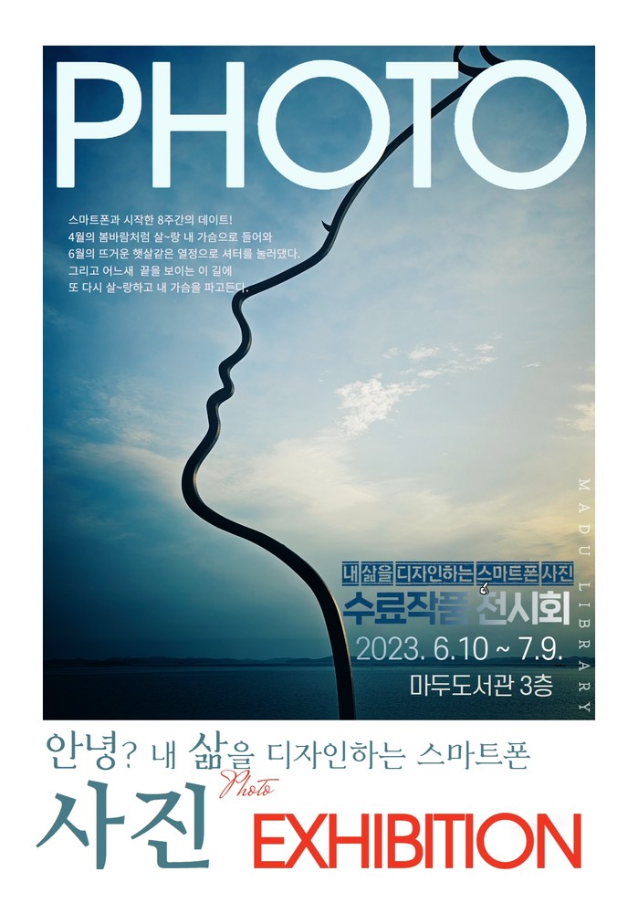 ‘안녕? 내 삶을 담아낸 사진전’에서는 마두도서관에서 진행한 문화 프로그램인 <내 삶을 디자인하는 스마트폰 사진> 수강생이 스마트폰으로 촬영한 개성 있는 작품들을 전시한다. 전시회에서는 이웃 시민이 촬영한 정발산과 호수공원 등 고양시 곳곳의 풍경, 정물 등 시민의 삶의 공간을 담은 30여점의 사진을 만나볼 수 있다.