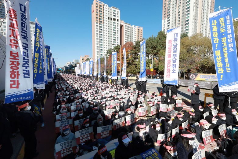 이번 집회는 경기관광공사가 신천지예수교회 측의 파주 임진각 평화누리공원 대관을 일방적으로 취소한 데 대한 항의의 일환으로, 지난 15일 열린 규탄집회에 이어 지속되고 있다.