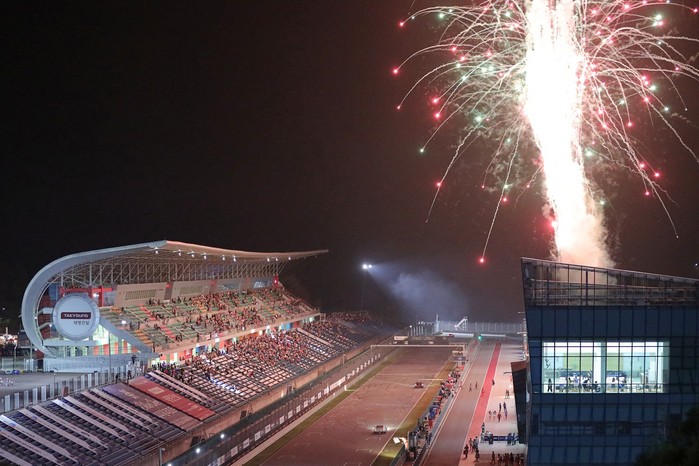 [사진설명] 지난 2019년 인제스피디움에서 열렸던 나이트 레이스 당시 슈퍼 6000 클래스 결승전 종료와 함께 불꽃놀이가 시작되고 있다.