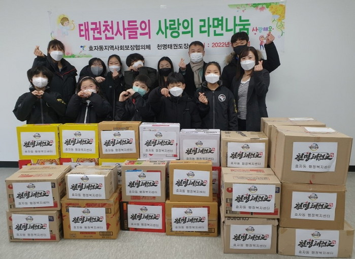 조재현 효자동장은“추운날씨에도 불구하고 라면을 전달하기 위해 효자동을 방문해준 태권천사들과 사범님들께 감사 인사를 드린다. 기부 받은 라면은 관내 취약계층에게 잘 전달하겠다”고 밝혔다.