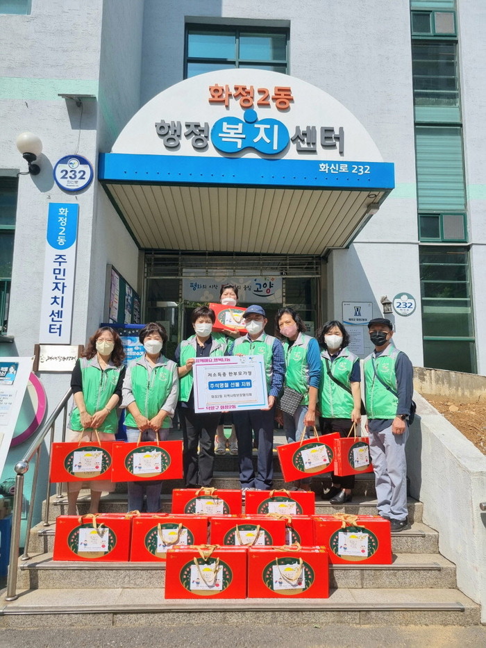 아울러, 김현정 화정2동장은 “마련한 선물과 함께 건강하고 즐거운 추석 명절 보내시길 바라며 앞으로도 소외계층과 복지사각지대에 있는 이웃을 지속적으로 발굴하여 지원 사업을 확대해 나갈 계획이다.”라고 말했다.