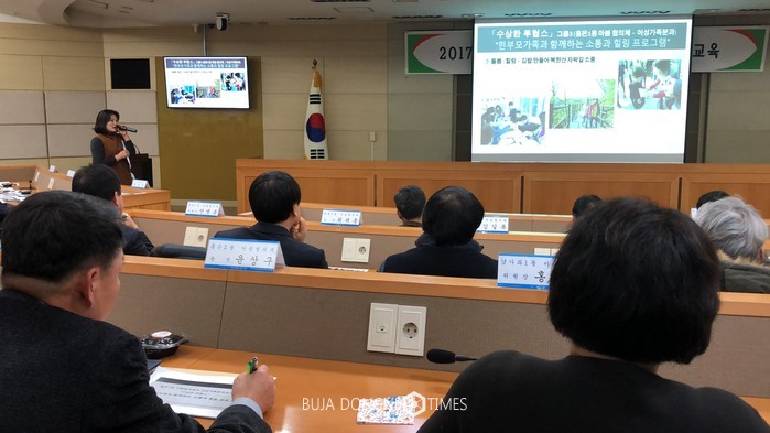 [부자동네타임즈 이병도 기자]서대문구(구청장 문석진)가 13일 구청 대회의실에서 마봄협의체(동 지역사회보장협의체) 공동위원장과 위원 등 80여 명이 참석한 가운데 ‘2017년 하반기 신규위원 위촉장 수여식과 복지역량강화 교육’을 실시했다.