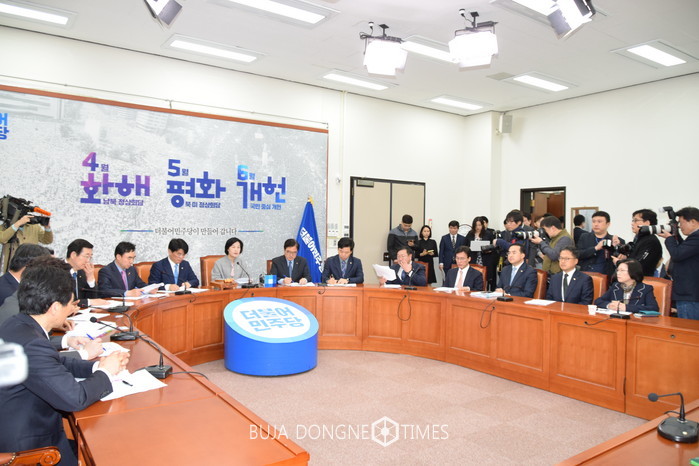 추미애 대표님과 우원식 원내대표님께서도 말씀하셨지만 국민투표법에 대해서 또 한 말씀드리겠다. 앞에서는 개헌을 논의하자면서 뒤에서는 국민투표법 처리를 거부하는 자유한국당 이중적 태도를 국민의 이름으로 강력하게 규탄한다. 국민과 수차례 약속한 6월 국민개헌을 거부하기 위해 국민투표법을 볼모로 잡는 반헌법적 행태를 자행한 것도 모자라 국회의원으로서의 책무를 저버리는 행위에 부끄러움조차 느끼지 못하고 있다. 이미 수차례 강조했지만 국민투표법은 지난 2014년 7월 헌법재판소로부터 헌법불합치 결정이 내려졌고, 그 개정 시한을 2015년 12월 31일까지로 못박은 바 있다. 국민투표법은 4월 20일까지 반드시 처리되어야 한다. 국민은 다가오는 4월 20일 본회의를 기점으로 과연 국회 내 ‘개헌세력’과 ‘호헌세력’이 누군지 분명하게 확인할 것이라는 점을 분명하게 밝혀둔다. 진정 개헌의 의지가 있다면 즉각 국민투표법 개정부터 서둘러 처리해야 할 것이다.