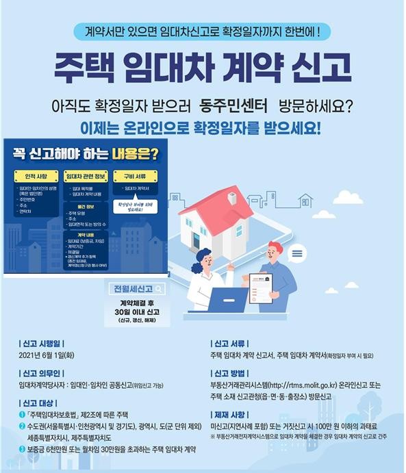 주택 임대차 계약을 진행할 시 임대인과 임차인이 공동으로 계약일로부터 30일 이내 신고를 해야 한다.