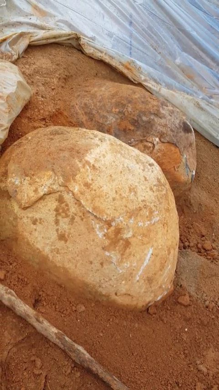 | △ 국립서울현충원 故 김영삼 전 대통령의 묘역에서 봉황알을 닮았다고 주장하는 돌덩이 7개가 나와 화제가 되고 있다. 장례위 관계자는 봉황알을 닮아 풍수지리상 좋은 징조라 주장하나, 봉황은 상상의 동물도 그 실체가 없다. 다만 크기로 보아 공룡알 정도로 보인다.(영상화면 캡처=장례위 관계자 제공 영상) 포커스뉴스 focusnews@focus.kr |