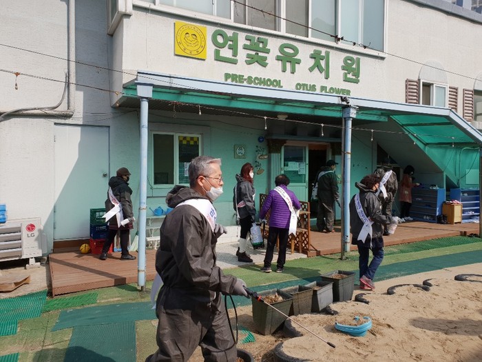 이번 방역은 성사1동장 및 성사1동 주민자치위원회 위원들 10여명이 함께 했으며, 지역사회 전파를 막겠다는 굳은 의지로 다함께 한마음 한뜻을 모아 어린이집 5개소, 유치원 1개소, 학원 및 체육시설 등을 체크하며 방역을 완료했다.
