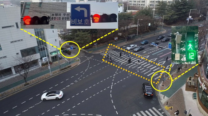 [사진설명] 보행자 우선출발신호 운영 현장.