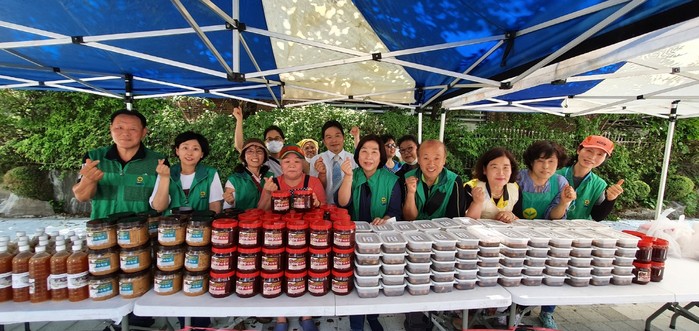 이날 부녀회 회원들은 장조림, 간장, 된장, 고추장 등을 정성스레 만들어 지역 소외계층 60가구에 전달했다.