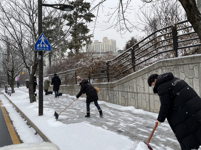 영하 10도에 육박하는 강추위 속에서도 덕이동 통장협의회와 제설봉사단원들은 주민들의 보행안전과 불편 해소에 중점을 두고 버스승강장, 횡단보도, 경사로 등 곳곳에 쌓인 눈을 치우는데 구슬땀을 흘렸다.