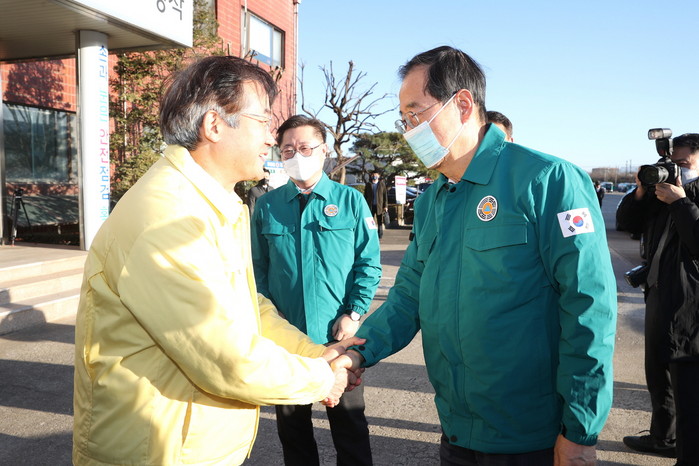 [부자동네타임즈 김인수기자] 한덕수 국무총리와 이동환 고양특례시장이 5일 오전 경기 고양시 대한송유관공사 서울북부저유소를 찾아 석유제품 입출하 현황을 점검하고 있다.