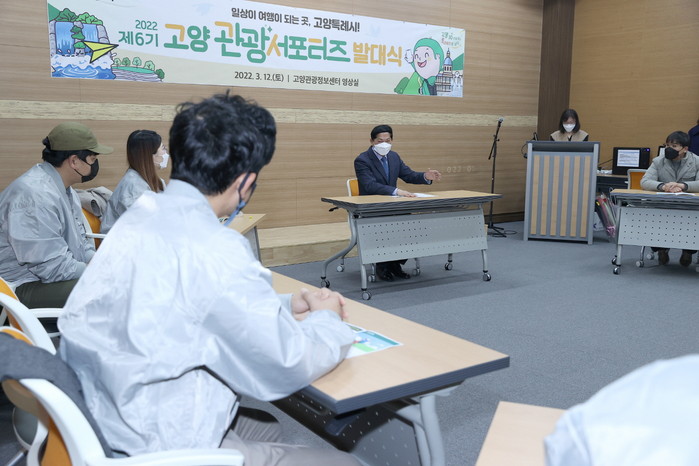 이번 발대식은 지난 2월 중 공개모집을 통해 선발된 16명의 제6기 고양 관광서포터즈가 참여했으며, 고양 관광서포터즈 소개, 위촉장 수여, 서포터즈 활동 방법 안내, SNS 마케팅 강의 순으로 진행됐다.