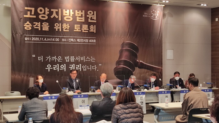 이날 토론회는 지난 6월 고양지방법원 승격을 위한 관련법 ‘각급 법원의 설치와 관할구역에 관한 법률’ 개정안이 발의된 상황에서 법률개정과 관계기관 설득을 위한 방향을 모색하기 위해 시가 법조계, 학계, 정계 등 전문가들을 발제자와 토론자로 초청한 자리다.