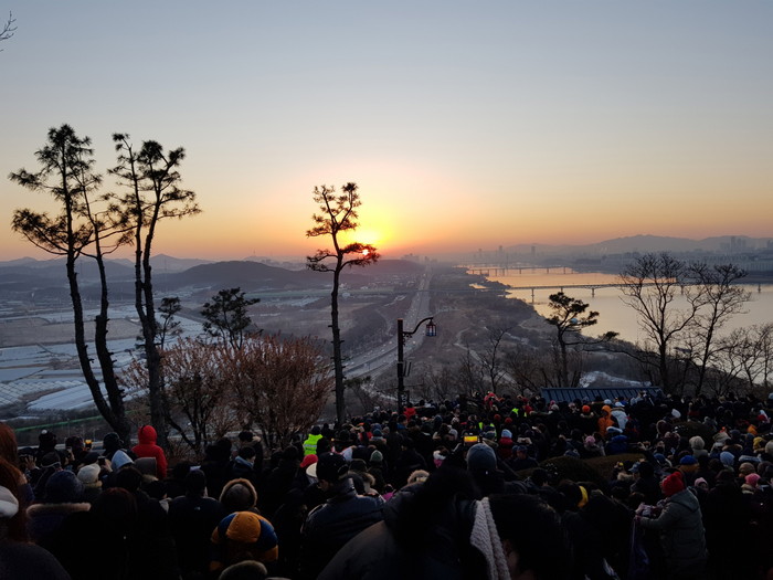 [사진설명] 행주산성에서 시민들이 일출을 보고 있다.