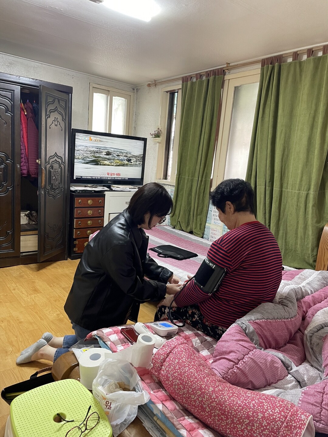 사업 대상자인 남 모 어르신은 “평소 경제적인 부담으로 병원에 가는 게 어려웠는데, 직접 방문해 건강 상태를 점검해 주고, 다양한 정보를 알려줘서 감사하다.”라며 고마움을 표했다.