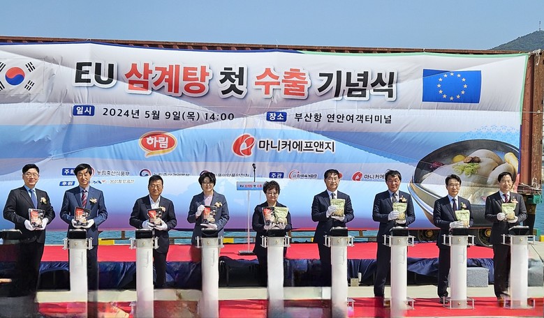 한국농수산식품유통공사(사장 김춘진)는 9일 부산항 연안 터미널에서 열린 EU 수출 삼계탕 첫 선적 행사에 참여하고, 삼계탕 등 국산 열처리 가금육의 유럽 시장 공략을 위해 홍보·판촉 등 다양한 마케팅 사업 추진에 나선다.