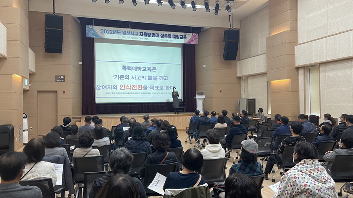 [부자동네타임즈 김인수기자] 고양특례시 일산서구(구청장 정윤식)는 지난 10월 26일 오후 일산서구청 대강당에서 관내 17개 자율방범대 소속 83명의 대원이 참석한 가운데 ‘안전한 지역환경 조성과 성폭력 근절을 위한 자율방범대의 역할과 과제’를 주제로 성폭력 예방교육을 실시했다.