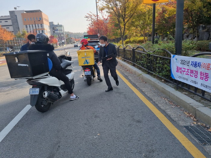 이번 단속으로 불법 등화장치 부착 등 자동차관리법 29조 위반 9건, 번호판 훼손 등 자동차관리법 10조 위반 3건, 소음기 개조 등 자동차관리법34조 위반 5건 총 17건을 적발했다.