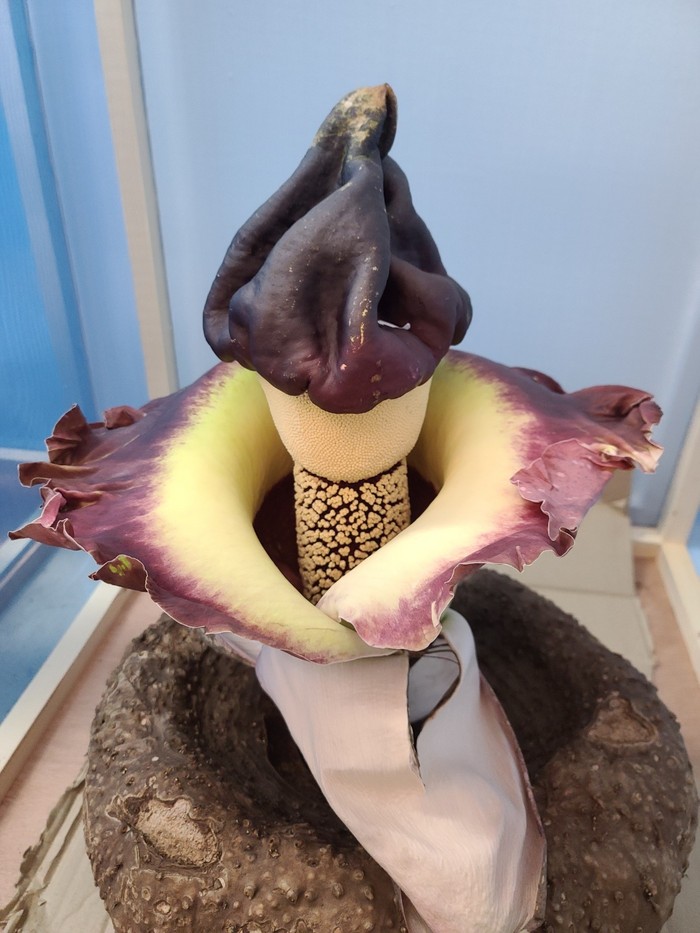 해외 반입 금지 식물인 ‘아모르포팔루스 파에오니폴리우스’는 2023고양국제꽃박람회 폐막에 맞춰 진행하는 금지 식물 폐기 절차를 앞두고 개화하였다.