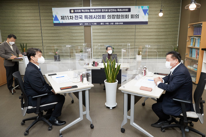 이날 회의에는 이길용 의장을 비롯해 김기준 용인시의회 의장, 조석환 수원시의회 의장 등이 참석하였으며, 지방의회 인사권 독립에 따른 정기 인사 현황 공유 및 특례시의회 권한확보를 위한 건의사항 및 건의 방식 등에 논의 하였다.