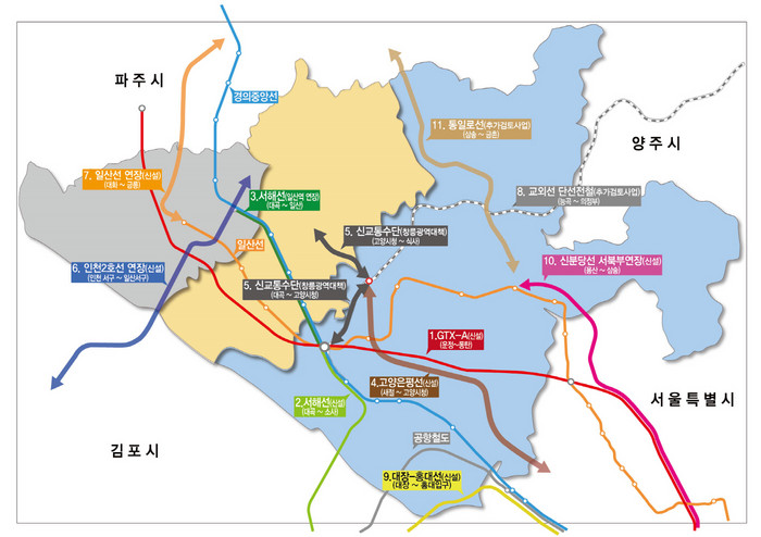 [부자동네타임즈 김인수기자] 고양시 교통환경이 하루가 다르게 달라지고 있다. 서울 출퇴근 노선 뿐만 아니라 인천, 수도권 남부.북부권 노선이 속속 확보되면서 철도교통망이 늘어나고 있다. 그동안 계획에 머무르던 사업들이 착착 진행되면서 실질적인 결과들이 가시화되어가고 있다.