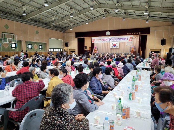 [부자동네타임즈 김인수기자] 일산동구 고봉동은 지난 14일 고봉동 새마을부녀회·새마을지도자협의회 주관, 고봉동 각 직능단체 후원으로 관내 성석초등학교 체육관에서 약 800여 명의 어르신과 지역 주민을 초대해 2022년 고봉동 어르신 잔치한마당을 성대하게 개최했다.