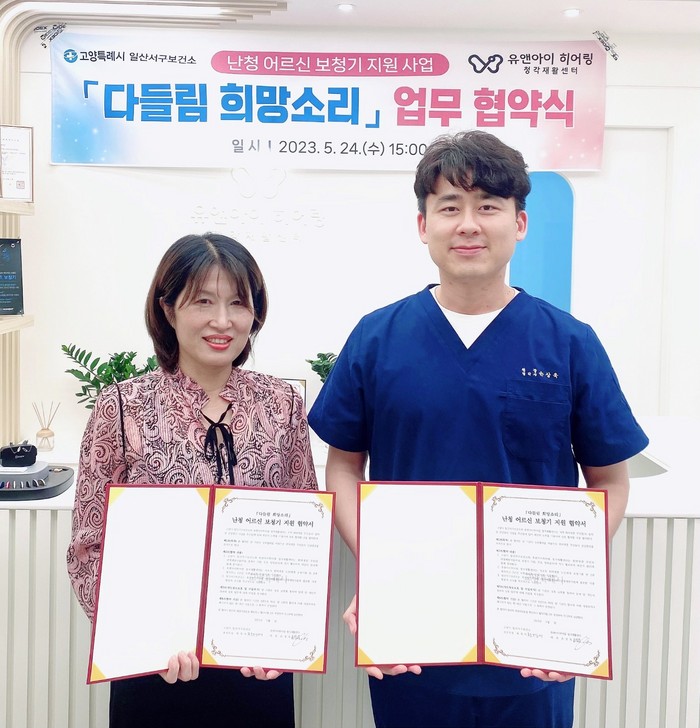 이번 협약으로 일산서구보건소는 대상자 선정 및 난청예방사업에 필요한 각종 행정사항 등을 지원하고 유앤아이히어링 청각재활센터는 무료 청력검사 및 연 2대의 보청기를 지원할 예정이다.