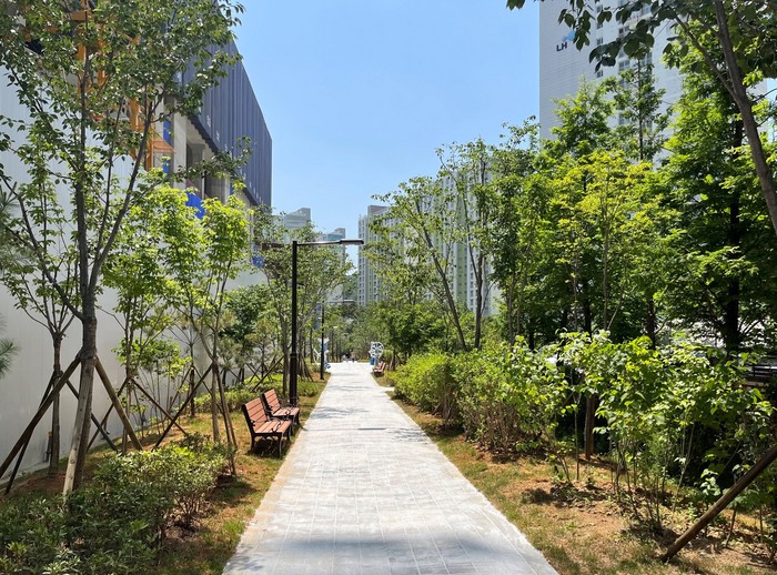 해당 부지는 그 동안 적절한 보행로가 없어 향동1·3단지 아파트 주민을 포함한 지역 주민들이 통행에 어려움을 겪어왔다. 이에 시는 인근 주요 보도를 연결하는 완충녹지에 산책로를 조성했다. 산책로는 벤치 등의 휴게시설과 가로수를 갖춰 쾌적한 통행 공간으로 거듭났다.