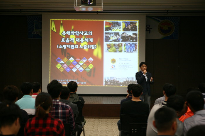 이번 교육에서는 중앙119구조본부에서 근무하고 있는 조철희 박사가 ‘화학사고 유형별 현장대응요령’을 주제로 ▲다양한 화학사고 대비 대원 안전 확보 및 체계적·효율적 대응, ▲화재·화학물질 누출로 인한 잠재적 위험요소·인체 영향 평가, 소방대원의 구조현장 노출 유해인자 및 특수사고 대응을 중점적으로 강의했다.