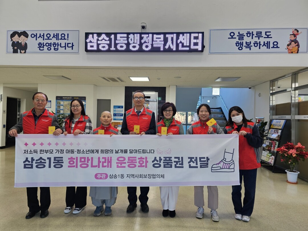 [부자동네타임즈 = 김인수 기자] 고양특례시 삼송1동 지역사회보장협의체는 지난 12일 지역 내 저소득 가정에 ‘희망 나래 운동화 상품권’을 전달했다고 밝혔다.