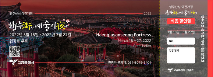 [부자동네타임즈 김인수기자] 행주산성의 봄밤이 열린다. 고양시가 행주산성 야간개장 ‘행주가(街) 예술이야(夜)’를 3월 18일부터 27일까지 열흘 간 개최한다.