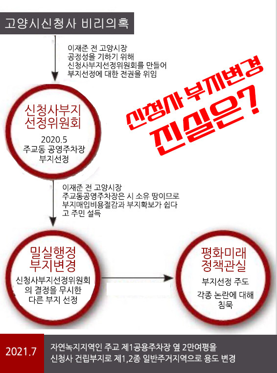 [부자동네타임즈 김인수기자] 고양시 신청사 건립 부지 선정을 두고 각종 의혹이 불거지며 논란이 밝혀지지 않고 있다. 주민 대다수가 요구하는 대곡역세권 부지가 아닌 주교동 공영주차장이 포함된 부지가 선정되는 과정에서 제기된 의혹이 증폭되면서 고양시와 주민 갈등이 격화되고 있다.