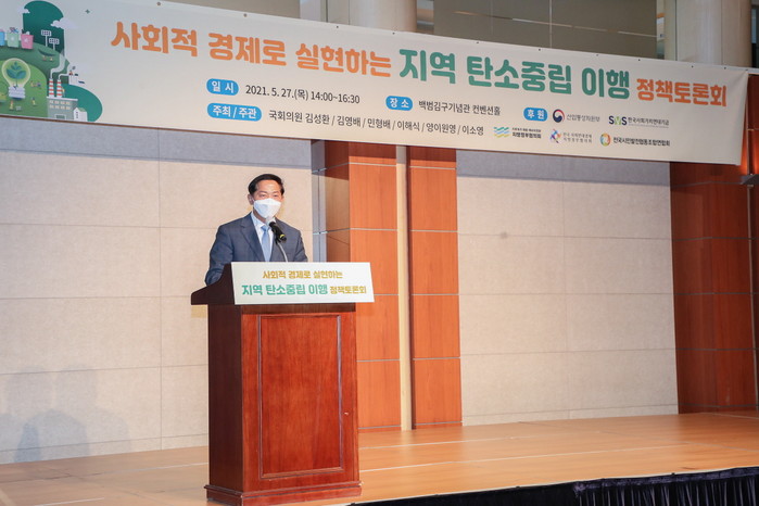 [부자동네타임즈 김인수기자] 이재준 고양시장은 27일 기후위기 대응·에너지전환 지방정부협의회(회장 이재준 고양시장) 등에서 주관한 ‘사회적 경제로 실현하는 지역 탄소중립 이행 정책토론회’에 참석해 환영사를 했다.