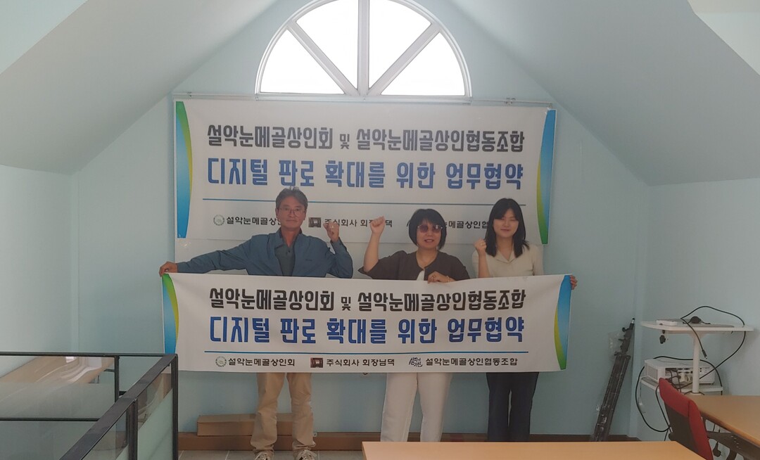 두 기관은 업무협약식에서 ㈜회장님댁의 매장 방문 고객을 대상으로 ‘네이버 스마트스토어’를 통해 설악눈메골시장 상인회 및 설악눈메골상인협동조합 상품에 대해 디지털 판로 확대를 위해 협력해 나가기로 했다.
