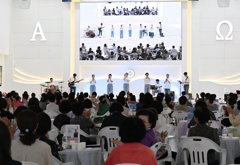12일 신천지 군산교회에서 신나는 여름 분위기의 곡으로 버스킹이 진행돼 시민들이 함께 손뼉을 치고 있다.